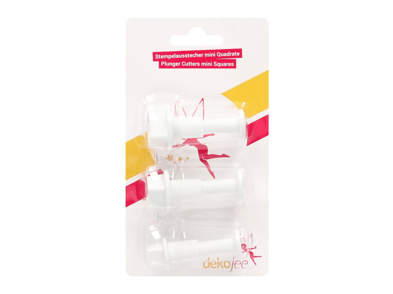 Mit den dekofee Stempelausstechern können Sie einzigartige Dekorationen aus Fondant herstellen. Nutzen Sie den Ausstecher, um Teile aus Fondant auszustechen oder um direkt auf Ihrer Torte ein Design zu prägen. Zum Herstellen von Teilen drücken Sie ihn fest auf den Fondant auf und lösen Sie dann das Teil durch Durchdrücken des Stempels. Tortenkunst kann so einfach sein!