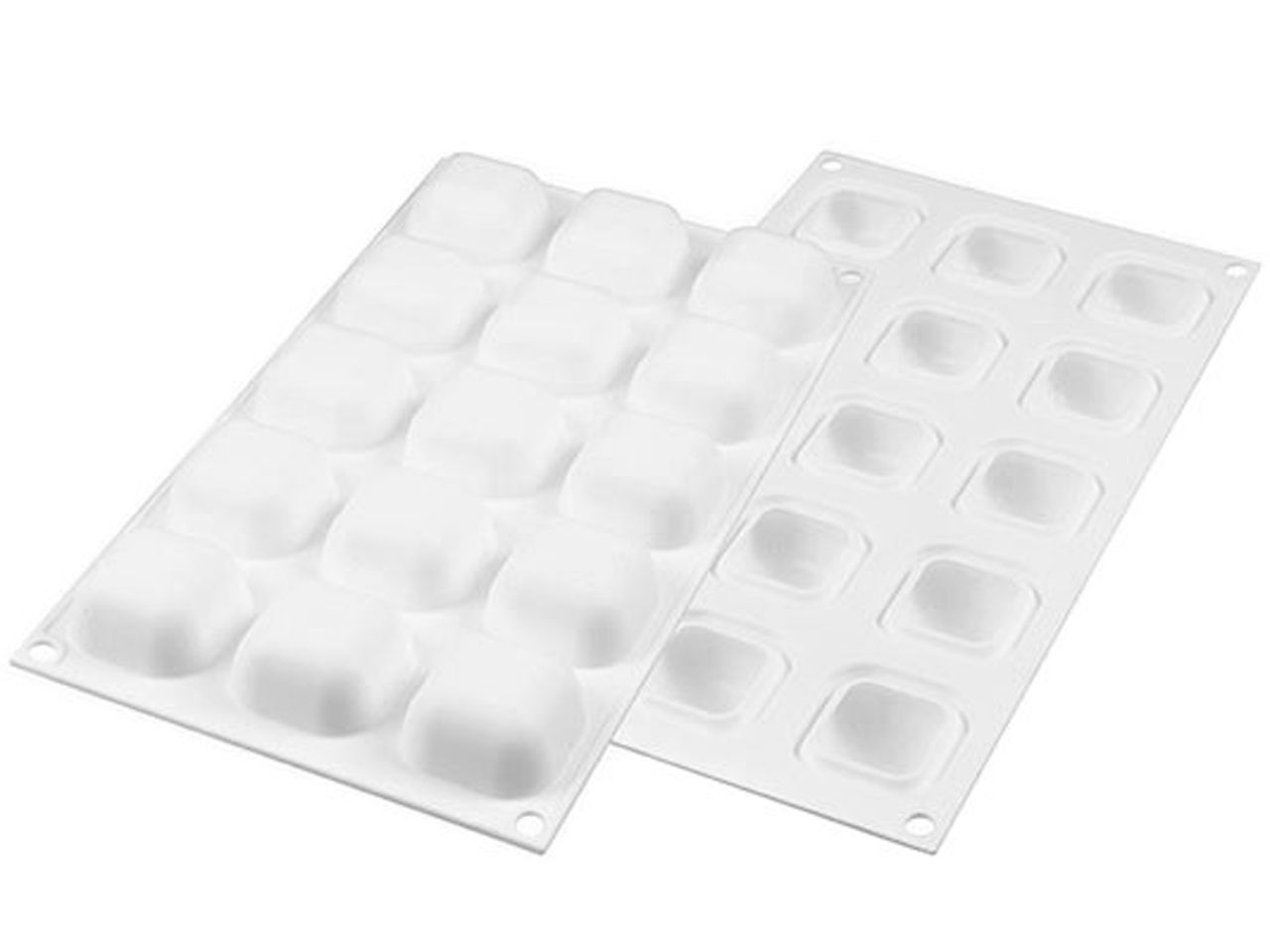 Erhelle deine Vitrine mit kostbaren Kreationen von perfektem Schnitt. GEM 30 von Silikomart Professional ist eine Form die 15 Vertiefungen mit jeweils 30ml besitzt, charakterisiert durch ein einzigartiges Design, welches durch einen speziellen und innovativen Rand auf der Oberseite entsteht, der den Zubereitungen eine ausgefallene abgerundete Form an der Unterseite verleiht. Klassik und Moderne begegnen sich in GEM 30 und erschaffen so Einzelportionen von kostbarem Geschmack und strahlen wie ein Juwel.