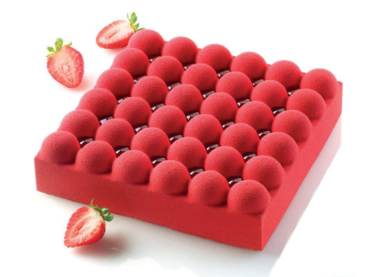 Weiche und abgerundete Linien sind bezeichnend für die sinnliche BUBBLE, die Form von Silikomart Professional, welche es erlaubt Kreationen mit einem Volumen von 1400mlvon unverwechselbarer Ästhetik und Geschmack zu erstellen. Resistent gegenüber Temperaturen von -60°C bis +230°C, ist BUBBLE für eine breite Reihe von Zubereitungen gedacht, von Halbgefrorenem bis hin zu gebackenen Kreationen.