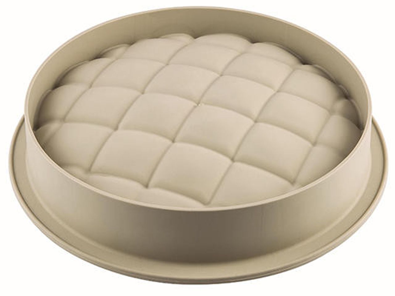 Für eure besonderen Anlässe vertraut euch ELEGANZA an, einer Schmuckschatulle für Geschmack mit zart gesteppter Maserung, welche es euch erlaubt leibhaftige Kreationen in 3D zu erstellen, die eure Gäste sprachlos lassen werden! Die Form verfügt über einen revolutionären inneren Rand, welcher euren Zubereitungen an der Unterseite eine leicht abgerundete Form verleiht. Eleganza garantiert die Zubereitung von tadellosem Halbgefrorenem und Mousse oder aber von Backwaren.