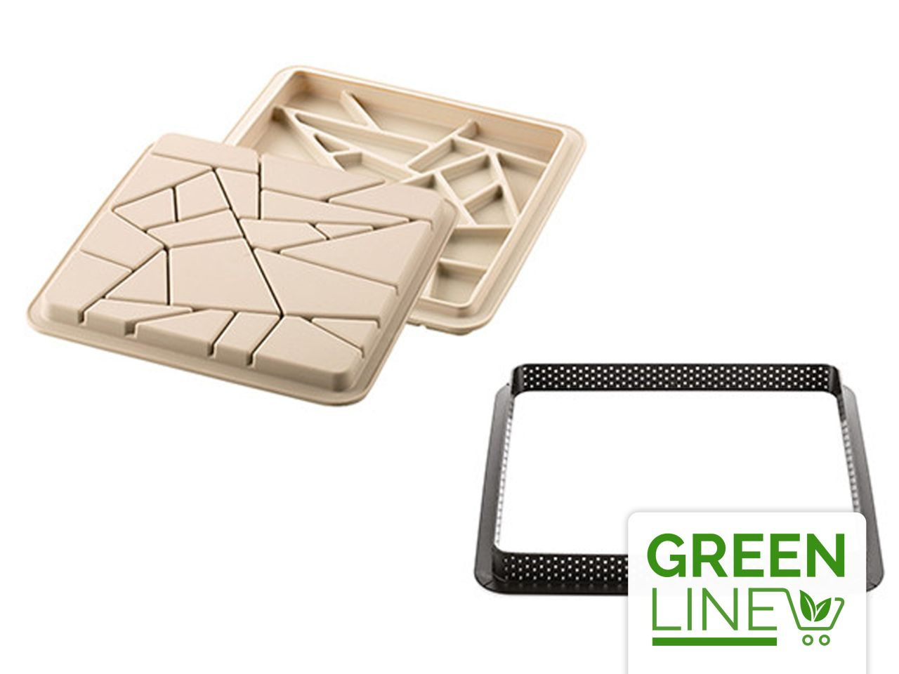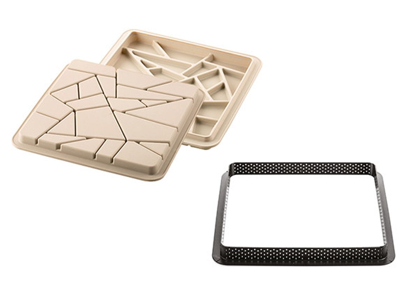 Das KIT TARTE LIBERTY Set von Silikomart bietet eine neue Art, eine traditionelle Tarte anschaulich und zeitgemäß zu gestalten. Das Set besteht aus zwei Teilen: einem viereckigen Ring um die Mürbeteig-Hülle zu erschaffen und einer Silikonform, die ein feines Motiv aus Zick-Zack Linien darstellt. Der speziell hergestellte Ring mit den Maßen 20x20cm besteht aus einem neuartigen, nicht haftenden Kunststoffmaterial, mit dem sich gleichmäßige Backergebnisse herstellen lassen.