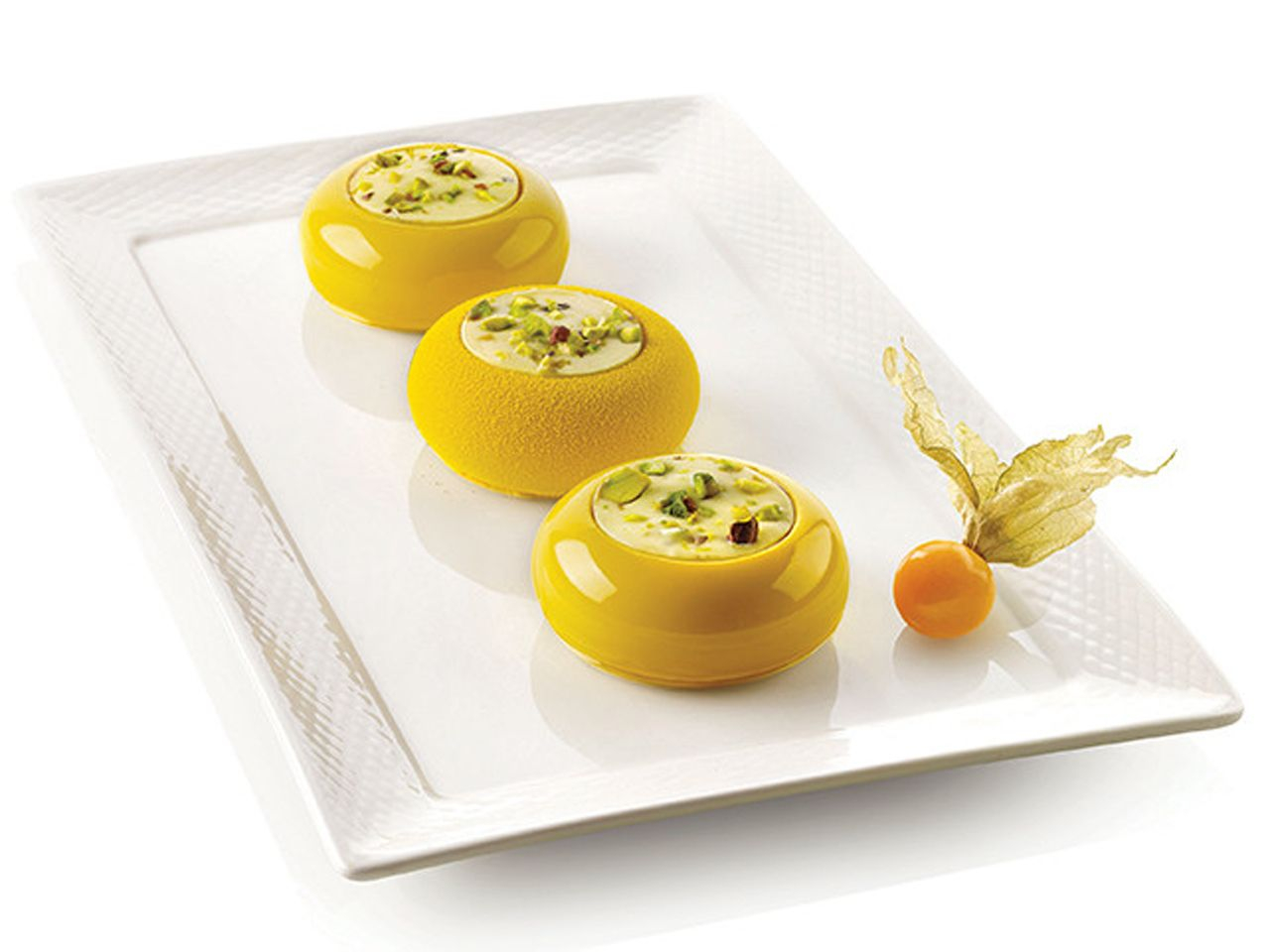 MINI DOT von Silikomart ist die Form zur Herstellung von 6 einfachen und schnell gemachten Einzelportionen, passend für jede Gelegenheit. Praktisch und vielseitig, so wird diese Form der ideale Verbündete bei deinen Experimenten in der Küche. Jede Vertiefung der Form Mini Dot der Linie 3Design von Silikomart verfügt über einen speziellen inneren Rand, welcher den Böden eurer Zubereitungen eine leichte Rundung verleiht. Mini Dot garantiert perfekte Ergebnisse, nicht nur als Halbgefrorenes oder Mousse, sondern auch gebacken.