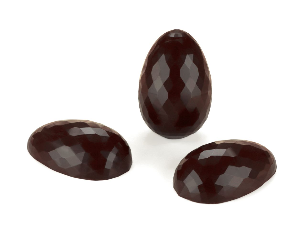 Profi Polycarbonat-Formen zum Gießen von 8 Schokoladen Halbeiern mit Diamantdesign. Sie können die Halbeier auch zu ganzen Eiern zusammensetzen und z.B. auch mit Überraschungen oder als Schoko-Bombs füllen. Diese Formen wurden für den dauerhaften Einsatz entwickelt und dürfen nicht mit günstigen, biegsamen Formen für Hobby-Konditoren verwechselt werden. Bei guter Pflege halten unsere Formen jahrelang.